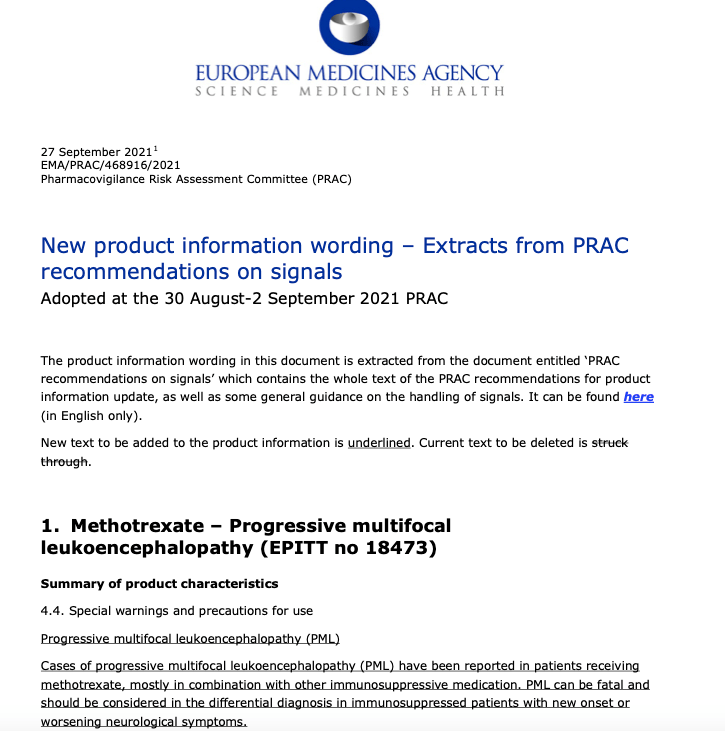 EMA 提示甲氨蝶呤新增不良反应!一文教你