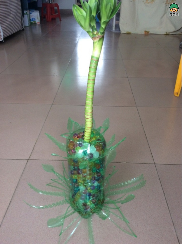 用可乐瓶改造而成的艺术环保花瓶DIY作品