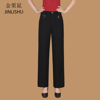 筒裤宽松裤中老年妈妈装休闲裤 黑色 2尺8