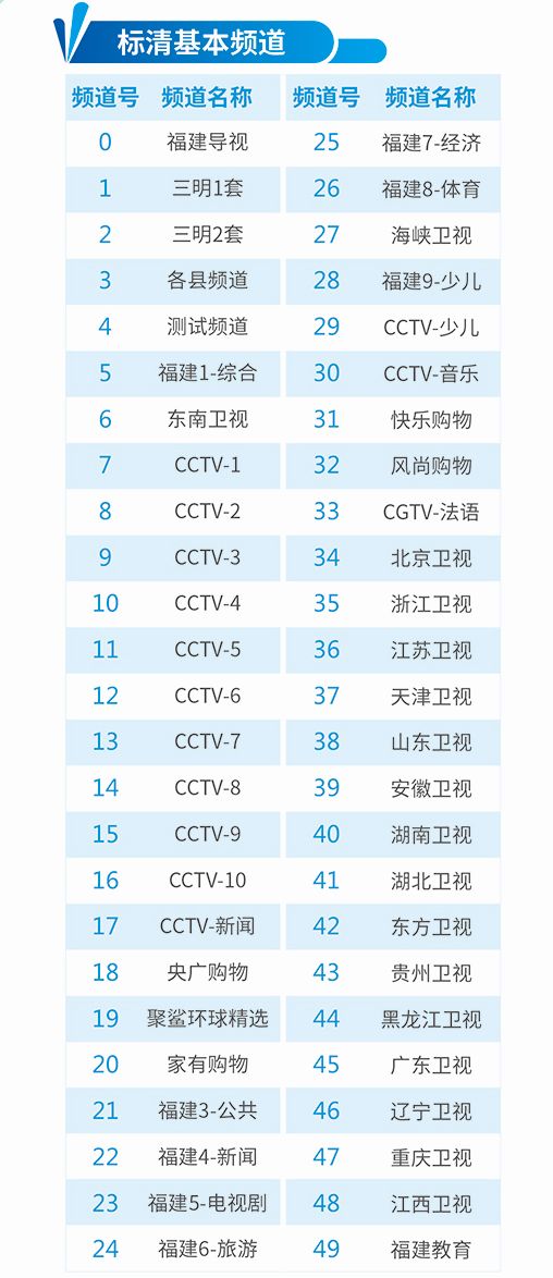 2019版福建广电网络数字电视(三明)频道表 敬请收藏!