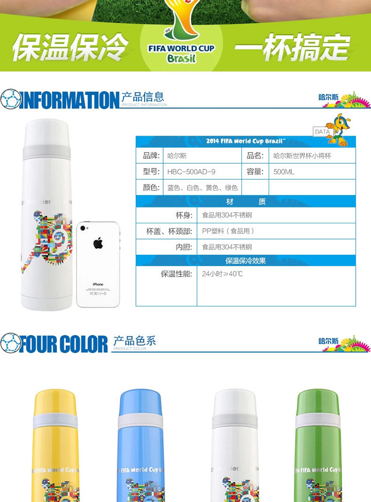 哈尔斯 450ml 世界杯激爽保温杯 世界杯
