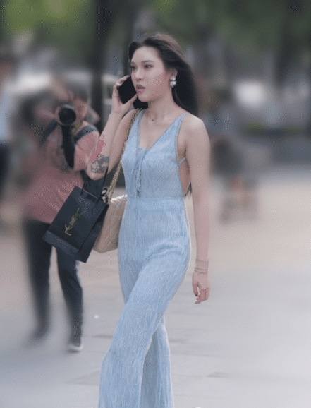 从积极的角度来看,这位美女的脸真的很棒。在精致妆容的背景下,美女的气质突然吹到了她的脸上。白色的皮肤搭配这样的蓝色吊带连身衣,浅蓝色的薄纱蕾丝设计让她显得充满了精灵的气息。对于这样一个女神级别的人物来说,在街上行走肯定会有极高的折回率。