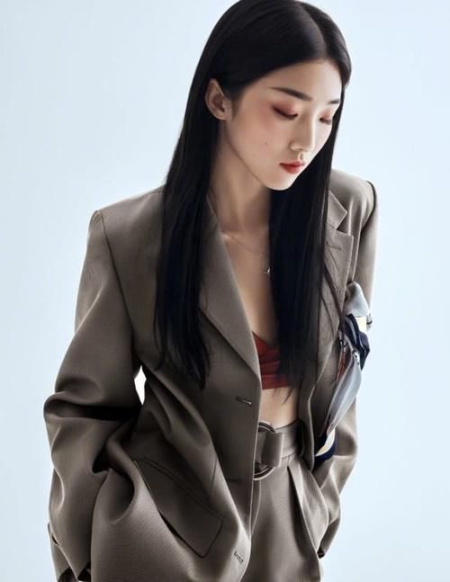 为了拍摄时尚大片,亚米又把长发拿了回来。头发中间的发型进一步衬托了亚米的气场。“中间部分是女王”是真的。yamy在这种风格下的光环是饱满的。她穿着灰色套装,里面有一件勃艮第背心。yamy有着纤细的腰身,英俊而性感。她看得越多,就越能引起她的注意。