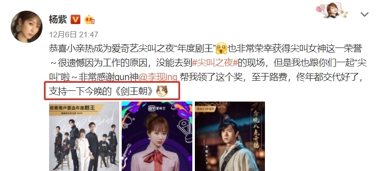 杨紫和李习安原本是大学同学,关系自然很好。在“亲爱的”的合作后,关系自然更好了。除了李贤邦杨紫获奖之外,杨紫还帮助李贤轩传递新剧《剑王朝》。这两者之间的关系真的很牢固。