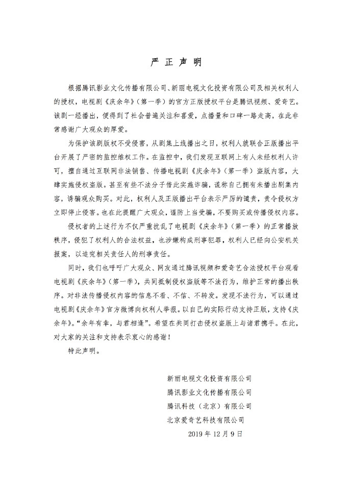 在平台宣布按需付费计划的同时,庆余年官方微博也发布了打击盗版资源的公告,并发表恶意言论,追究主要责任人的刑事责任。看来之前网上传言的泄露资源是真的。