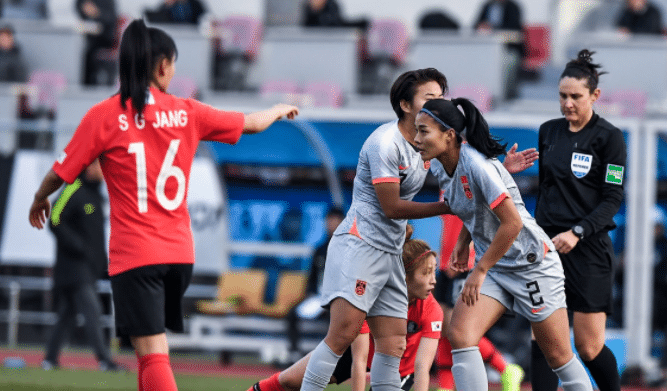 第30分钟,李蒙文停了下来,庞峰切入后,他的射门被尹戚颖没收。在第37分钟,李·蒙文被犯规,王寿彭的任意球被对方守门员没收。在第45分钟,王寿彭受伤摔倒,比赛中断了。上半场结束时,中国女子足球队和韩国女子足球队一起去了0-0。