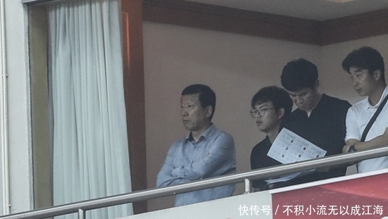 图:7月份观看上海德比时,崔康熙(左)看起来很严肃。