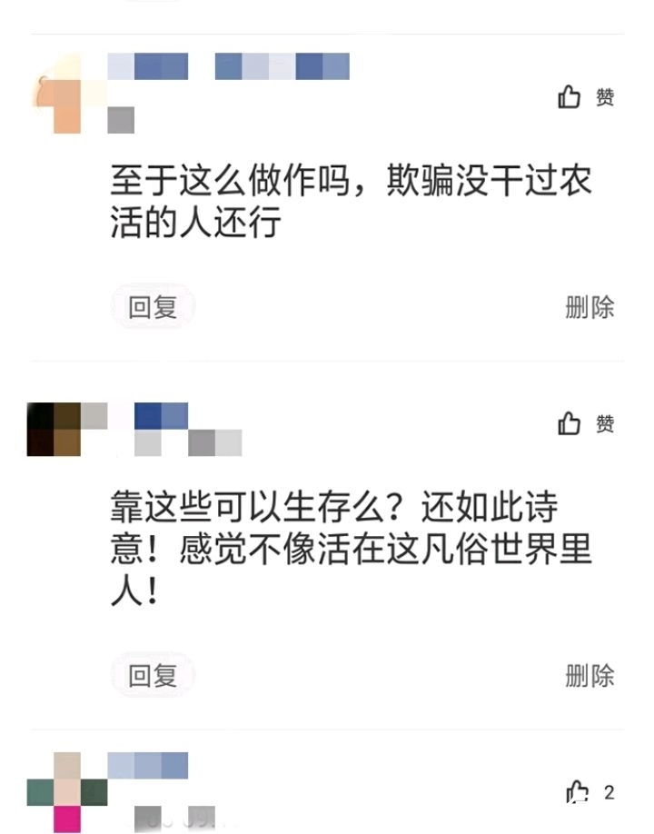 网民的意思是李子琪的生活是故意捏造的,是欺骗没有做过农活的人的行为。