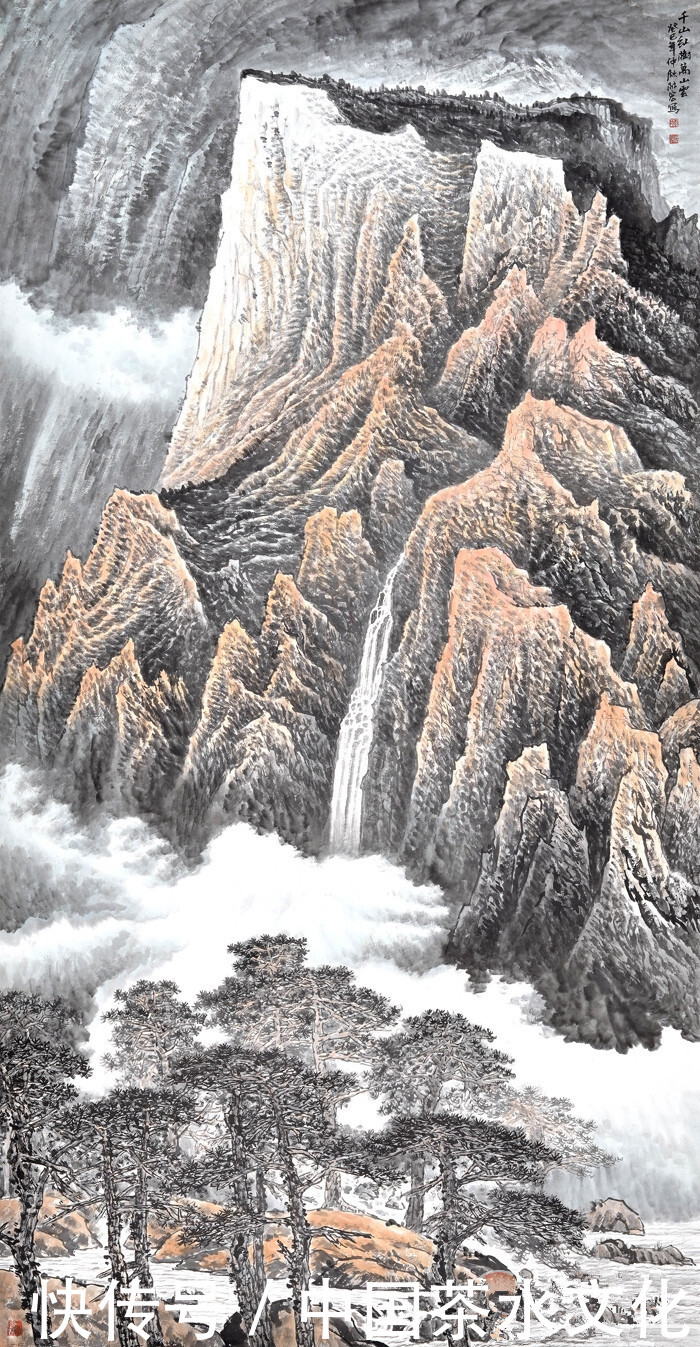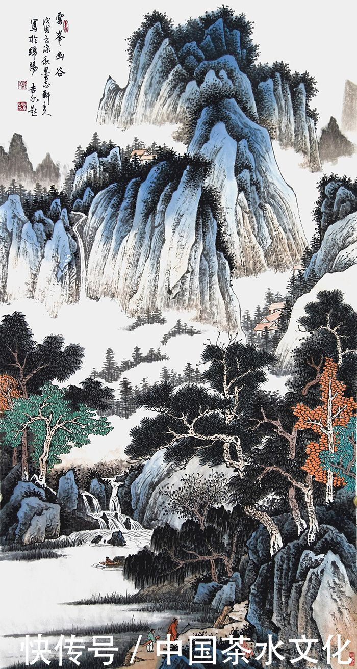 休吉尔的四英尺垂直新仿古山水画《云峰有谷》