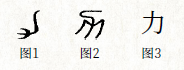 字形描述采用直视角度并用力形成字符。首先,拉动上半部的木杆,下半部为翻土装置(图1和图2);自进化以来,字形和线条的结构发生了变化:图1、图2 →图3。
