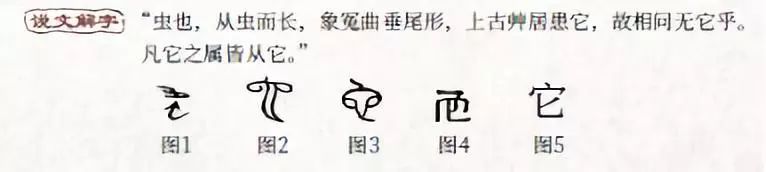 画出蛇头、蛇身与蛇尾的形状,意思是问有没有蛇。“它”左边加上一个“虫”即成了“蛇”字,蛇的古字
