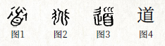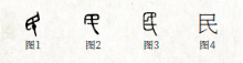 画一个尖锐的物体插入眼睛(图1);自进化以来,字形线的结构发生了变化:图1、图2、图3 →图4。