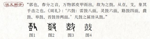 这个词的意思是打击乐器;许慎解释说,春天当一切都突破皮甲时,人们会用鼓来庆祝。《李周》把鼓分为六种类型:雷鼓有八个头;古灵有六个头。公路鼓有四个头。赋鼓、高鼓和金鼓只有两个头。