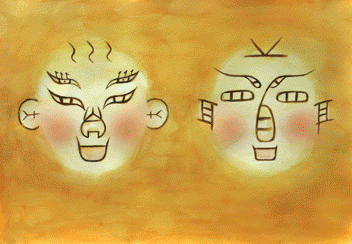 左边是鼓,右边是手,右边是槌棒,就像手持槌棒击打鼓一样(图1);左边是上鼓和下鼓,而右边仍然握着槌棒(图2);中间为圆弧形的鼓体底部有两条腿,顶部有鼓的装饰(图3);到目前为止,鼓的形状略有不同,但它仍然保持握着槌棒击打鼓的外观:图1、图2、图3 →图4。
