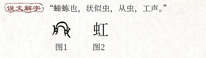 一个单词的意思表示彩虹。许慎强调彩虹是雨后天空中的七色弧线空,形状像一条长虫,由虫子和工人结合而成。