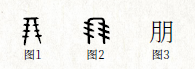 画两串贝壳(图1和2);自进化以来,字形线的结构发生了变化:图1、图2 →图3,属于左右结构。