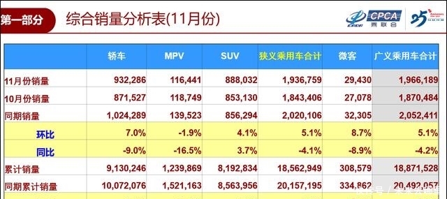12月9日,乘用车协会发布了2019年11月乘用车生产和销售数据。数据显示,2019年11月,包括轿车、运动型多功能车和多功能车在内的窄版乘用车零售额为193.7万辆,同比增长5.1%,但同比下降4.1%。截至今年11月,狭义乘用车销售总额为1856万辆,同比下降7.9%。