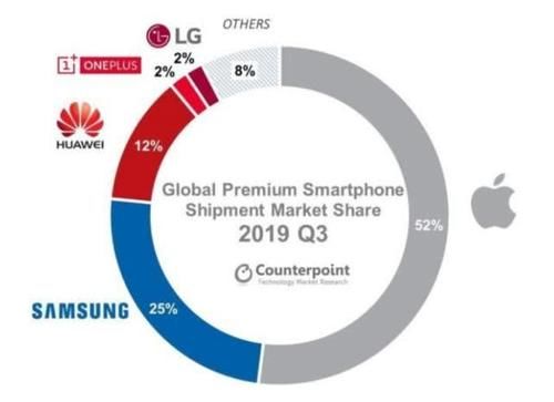 你为什么这么说?权威市场研究机构counterpoint research最近发布了一份关于高端智能手机的报告。根据该报告,苹果在高端机器上的市场份额高达52%,高于之前的48%,这次上升了4%。