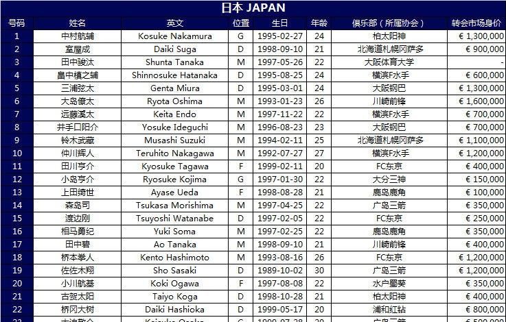 在四个参赛队中,日本队的绝大多数队员年龄在23岁以下,多达15岁,其中3人出生于1999年。从这个日本队的大名单中,我们可以看到有多少有才华的年轻日本人。这也是日本足球的未来。