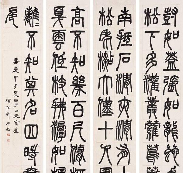然而,如果只是在理论上,是否有一种完全脱离抄写本,独自写作的状态?不完全是。因为任何艺术家的艺术创作,其最终来源于上一代艺术家自己的创作体验。正如牛顿在谈到他的科学成就时所说,他也站在巨人的肩膀上,发现了世界的科学真理。因此,不可能每个艺术家和书法家都完全脱离字帖,随心所欲地进行艺术创新。 汉字艺术性的最初源泉和流变——外师造化,中得心源而很多书法学习者、书法爱好者心中都有一个这样的逻辑,如果说每一位艺术家的艺术灵感是源于对前辈的学习,那么书法文字最初的起源者又是学习的谁呢?这不仅是一个刁钻的问题,而且是一个非常重要的问题。