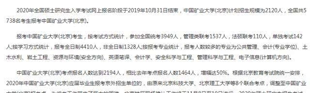 中国矿业大学(北京)在2020年登记了创纪录的5738名研究生入学考试申请者