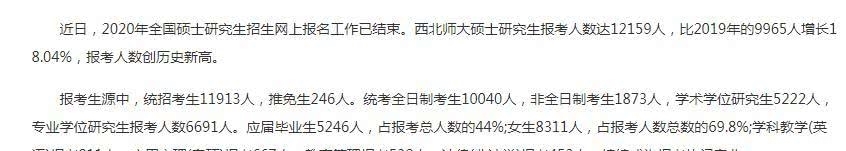 西北师范大学研究生入学考试的考生人数在2020年首次超过1万人,增长18.04%