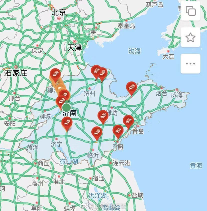 今天上午全时段,济南绕城高速南向北方向,郭店收费站至小许家立交、市中收费站至殷家林立交、济南西收费站至殷家林立交、港沟立交周边车流辆较大,车辆通行缓慢。青岛辖区青兰高速黄岛枢纽附近车流量较大,车辆通行缓慢,疏港高速2号线灵珠山、灵珠山东收费站封闭。京台高速齐河段车流量大,济聊高速济南方向16KM、0KM车辆通行缓慢。济青北线部分路段车流量较大,青银高速青岛方向淄博段收费站临时封闭。