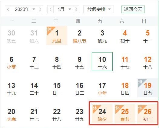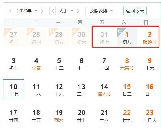 我不知道你是否注意到你可以休息10天,只休息两天。日历上显示我们不是在2月2日(星期日)去上班,而是在1月31日和2月1日去上班,所以如果我们休这两天假,我们可以有十天的假期,考虑一下是很荣幸的。(边肖计划这样做,回家养肥,顺便吃点猪肉(猪肉今年非常贵,我不敢在房子外面卖肉),没人会阻止我...)