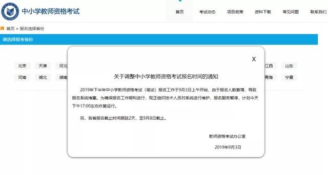 刚才,中小学教师资格考试网发布了调整报名时间的通知