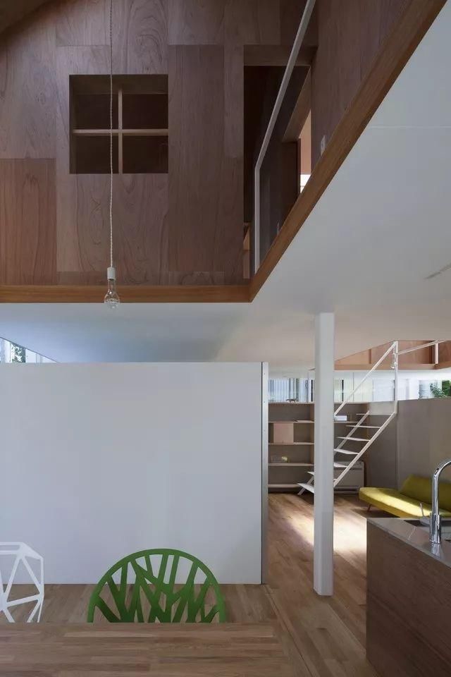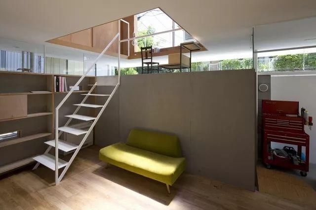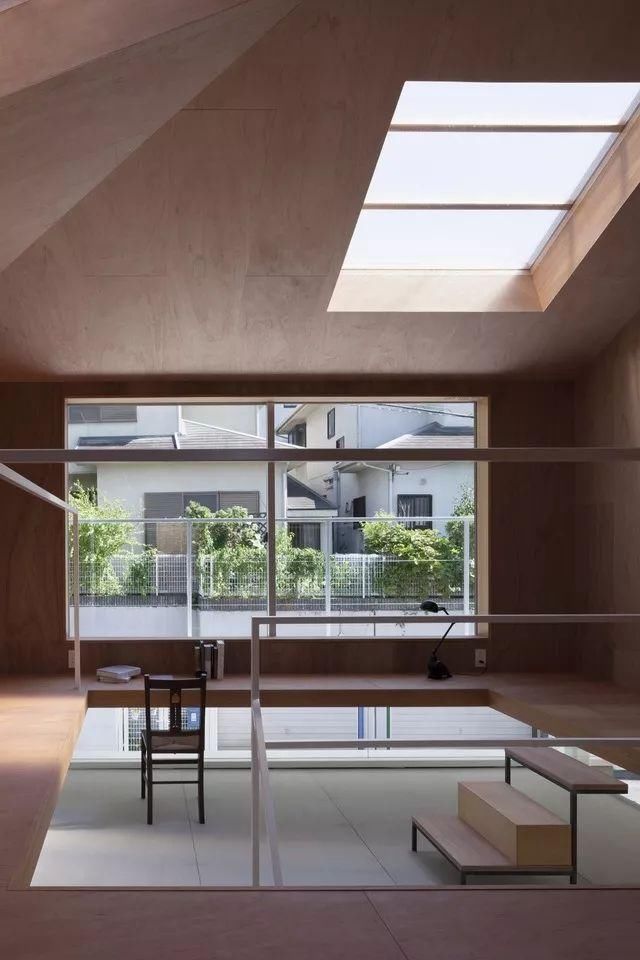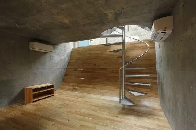 在这样困难的情况下,建筑师不得不寻找空通向天堂的房间,所以我们看到竹矢和坂把房子的墙弯向天堂空,寻找阳光和空。结果,弯曲的墙面隐藏在窗户内的“奇怪现象”发生了。然而,这不仅解决了照明和通风问题,还确保了房间内的隐私要求,并为房间空创造了另一种乐趣。我认为这个家庭的孩子将来一定是攀岩者...