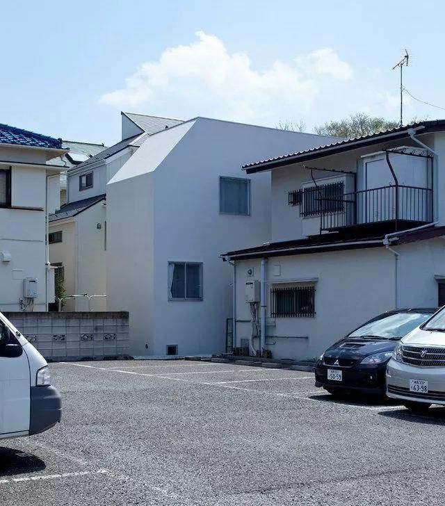 这座看起来有些尴尬的房子位于日本横滨,名为Byoubugaura House,由当地武士和坂工作室设计。房子的主人是一对当地夫妇和他们的两个孩子。这块贫瘠的土地面积只有60㎡,不仅如此,这块土地南北有邻居的居民楼被夹在中间,东边是一堵3米高的墙,三面都承受着压力,只有沿路的方向是开放的,而且离马路很近~