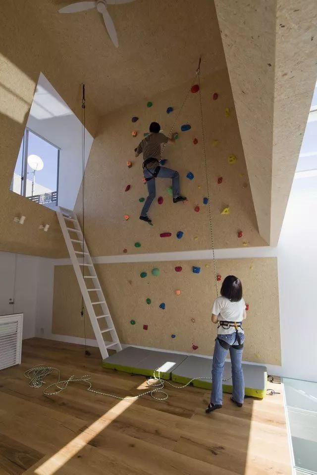 在你家屋顶上攀岩是什么感觉?位于家中的透明浴室有什么样的体验?让我们看看下面这栋奇怪的房子带来的有趣的空房间...