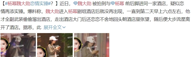 杨迷你和魏大勋之间的恋情一曝光,中国共产党的粉丝就发布了官方宣传材料。观众:非常有才华。你用杨敏和魏大勋做脑瘫吗?欢迎留言讨论。