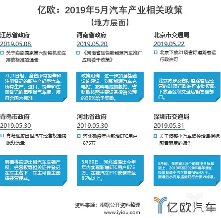以下是2019年5月汽车行业的相关政策: