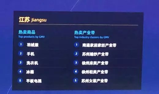 江苏人购买更多的裤子和羽绒服。这是为即将到来的寒冷空做准备吗?与此同时,江苏人不仅买,而且卖!作为一个主要的制造省,羽绒服、手机、洗衣机、冰箱都卖得很好,南通家纺产业带、苏州婚纱产业带、徐州床上产业带、橱柜产业带都比较亮,地图上有红点的地方都是直播的产业带。