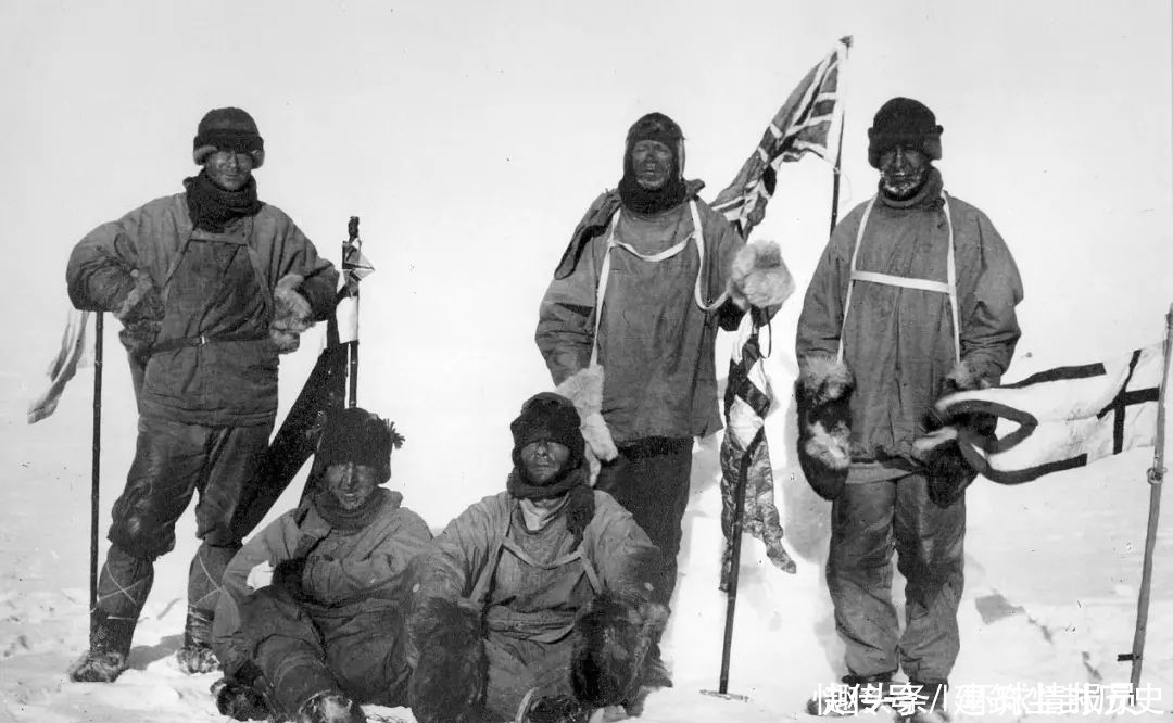 ▲1911年至1912年间袭击南极的英国队拍摄了一张照片,罗伯特·斯科特在第二个右侧担任领队。