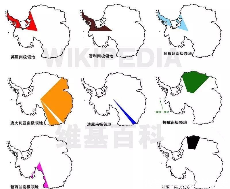 ▲红色标记是新西兰罗斯属地。其他国家声称它们的领土被划分为若干部分。