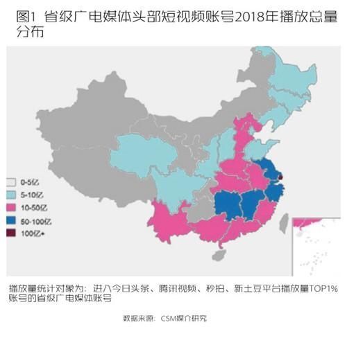 传统媒体内容已经成为短视频头竞争的一个价值极。在前1%的账户中,除中央广播电视台的50个账户外,地方广播电视媒体账户累计近500个;80%属于27个省级广播电视媒体,20%属于33个市级广播电视媒体。