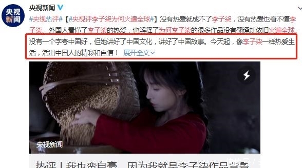央视还认为,只有热爱生活的人才能理解李子琪的视频,并呼吁每个人都像李子琪一样热爱生活,成为一个自信的中国人。