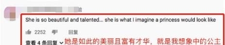 在YouTube上,超过700万人在看李治。一些外国网民不仅直接称赞她的美貌,还称赞她的才华。她只是我们想象中的公主。