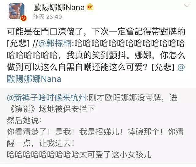 同样,在录制《演员的诞生》时,娜娜·欧洋因为没有工作证而被保安拦住。这时娜娜对保安说,“你已经看得很清楚了!是我。我是赵迪!打破碗的那个!你醒醒,让我进去!”这也是非常弄巧成拙的。