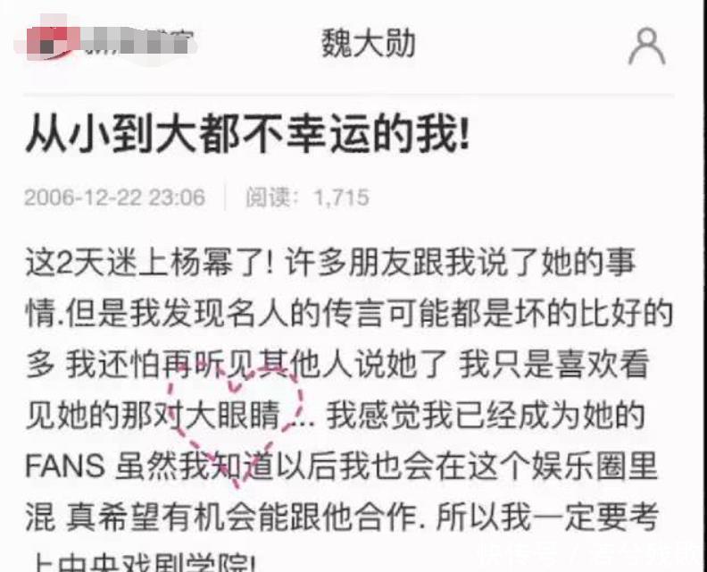 2006年,魏大勋明确表示,他喜欢小杨,喜欢看小杨的大眼睛,并决心进入中国歌剧。魏大勋,生于89年,当时只有17岁,和年轻的爱情种子一样大。