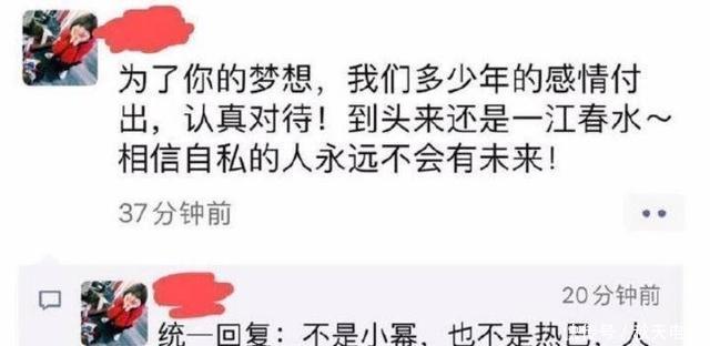一些网民报道说,副总裁贾星在朋友圈里发了一条帖子:“为了你的梦想,我们付出了多少年的爱,并认真对待它。”后来,它仍然是一条泉水之河。自私的人永远不会有未来!一些网民怀疑是刘恺威。