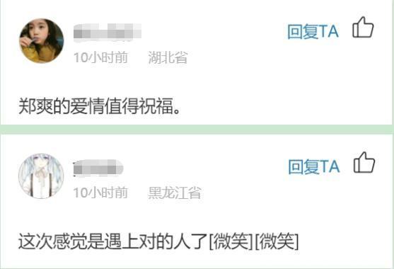 看到郑爽的现状后,评论区的网民都感慨道:“郑爽的爱值得祝福。这次我觉得我遇到了合适的人。”