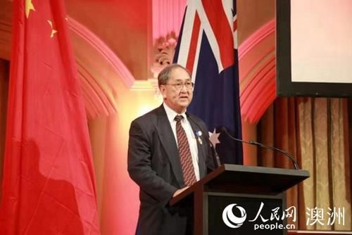 西澳大利亚华人公会长老会主席陈法真代表西澳大利亚华侨社区发表演讲(照片由中国驻珀斯总领事馆提供)