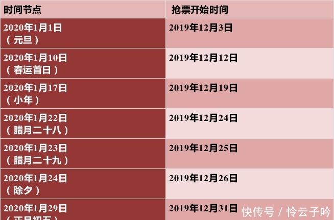 铁路春运火车票按网上电话订票提前30天,车站售票窗口和网点提前28天的规定办理。今天(12月3日),2020年元旦火车票正式发售。