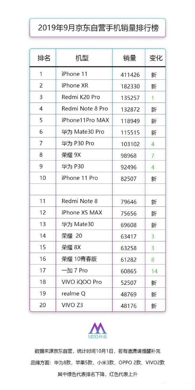 此外,小米的红米以其高价格和低价格成功地与K20 Pro一起进入前三名,这也是值得祝贺的。然而,VIVO和OPPO凭借相机的优势吸引了许多消费者,但它们稍逊一筹。在榜单的11-20位中,OV和OPPO可以说是完全落后了。