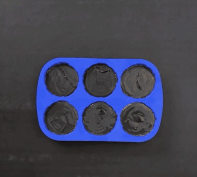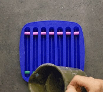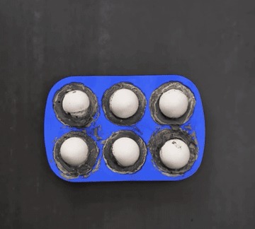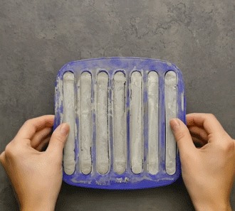 将水泥倒入带有玫瑰图案的冰架,并将鸡蛋模型放在另一个空间。