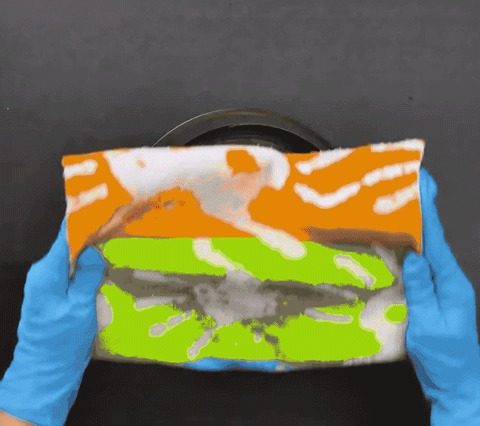 将毛巾放入水泥中,使毛巾均匀地被水泥覆盖。