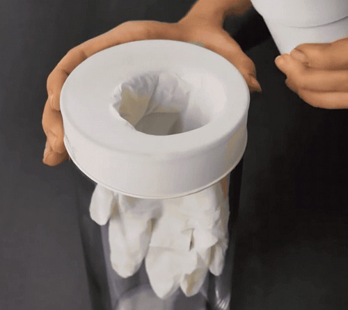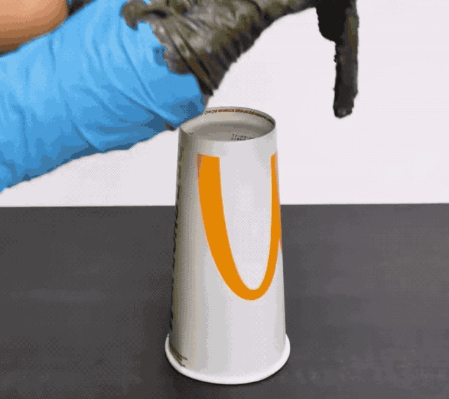 将混凝土毛巾放在倒置的纸杯上,让毛巾自然下垂。